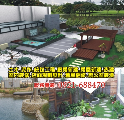 登記字號:O90188-000、土木包工業、彰化土木工程、彰化景觀工程、彰化房屋裝修、彰化室內整修、彰化店鋪裝修、土木統包工程、房屋裝修、房屋整修、房屋改建、房屋新建、室內整修、辦公室裝修、舊屋翻修、舊屋翻新、店舖裝修、店面裝修、餐廳裝修、泥作工程、廣場鋪面、整地、圍牆施工、餐廳施工、屋舍整修、廁所整修、廠房新建、辦公室裝潢、植栽買賣、苗圃買賣、苗木買賣、樹木買賣、庭園造景工程、景觀3D繪圖設計、景觀工程、景觀設計、景觀造景、空中花園造景、大樓中庭景觀工程設計、居家庭園綠化工程、庭園規劃、屋頂空中花園、屋頂造景、南方松木作工程、住宅景觀工程、學校景觀綠化、結構造型工程、庭園維護、景觀石材工程、房屋增建、鋼構工程、室內設計、室內裝修、室內裝潢、室內裝璜、裝潢工程、裝潢設計、裝璜設計、擋土牆、工地圍籬、房屋修繕、裝璜拆除、裝潢拆除、拆除工程、頂樓加蓋、隔間牆、抿石子、防水工程、止漏工程、防漏工程、浴廁防水、浴室防水、屋頂防水、鋼構工程、鐵皮屋、石桌石椅、樹苗盆栽、草皮舖設、人工草皮、涼亭建造、涼亭搭設、假山假水、人造瀑布、造霧設備、園藝工程、木作工程、木構工程、小木屋、木結構、擋土牆、水土保持、景觀步道、景觀植栽、噴灌系統、綠化工程、彰化辦公室裝修、彰化泥作工程、彰化圍牆施工、彰化廠房新建、彰化統包工程、